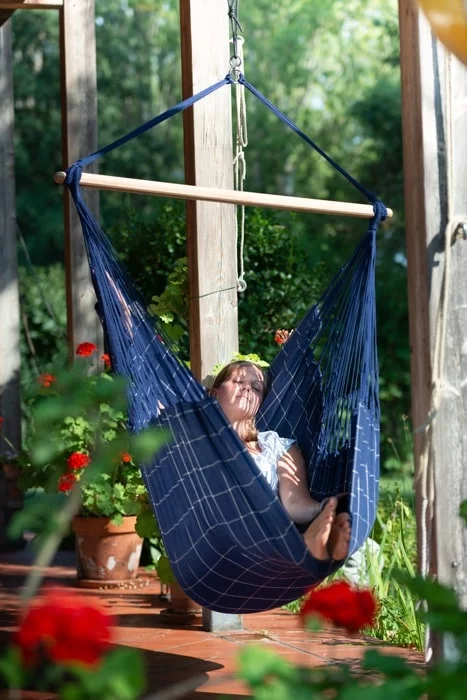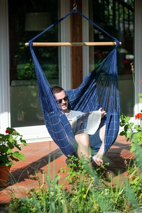 Met een doek van 180 cm lengte is het in een Comfort hangstoel heerlijk zitten en liggen op een kleine oppervlakte.
