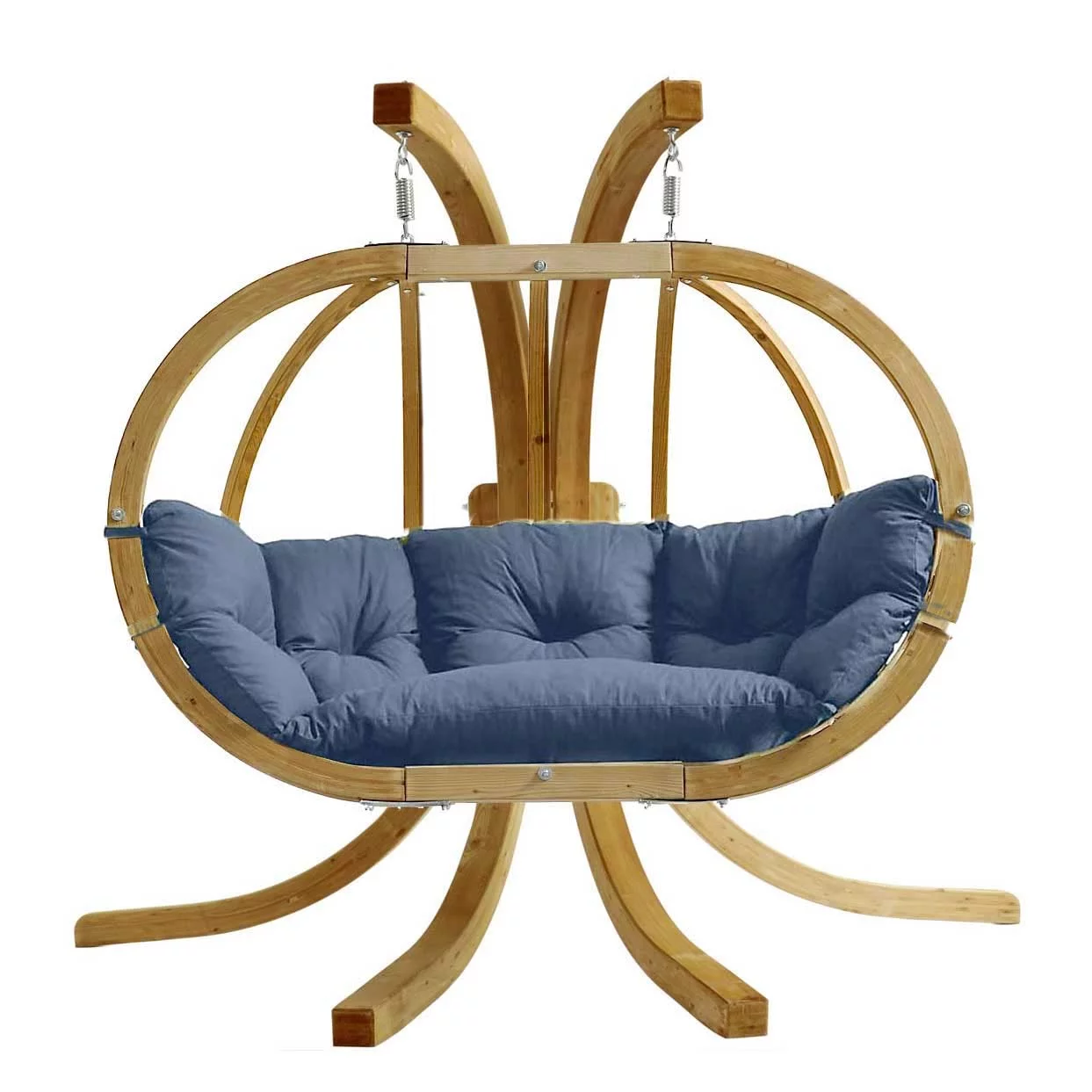 De Globo is gemaakt van kwaliteits naaldhout en heeft een groot zacht kussen, waardoor het echt een heerlijk en comfortabel plekje wordt. Het kussens is weersbestendig.