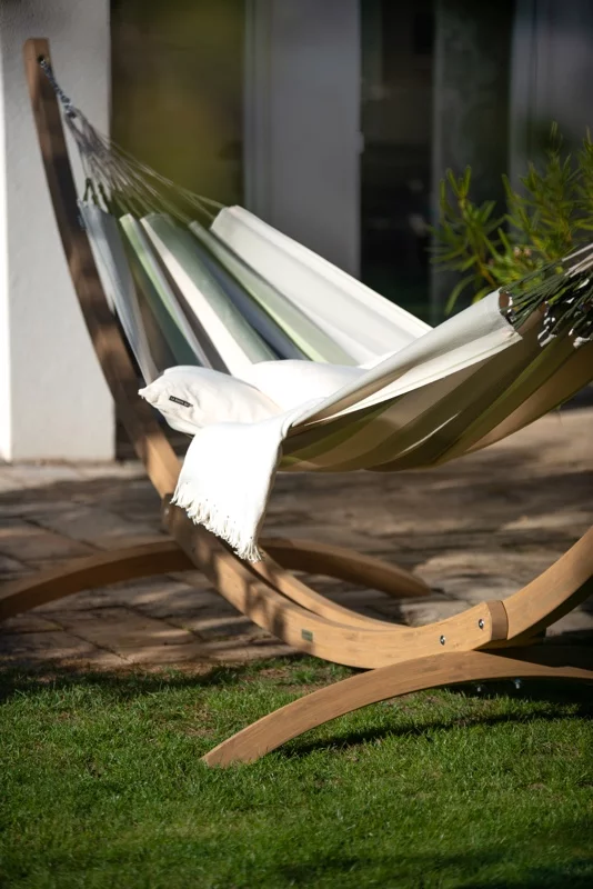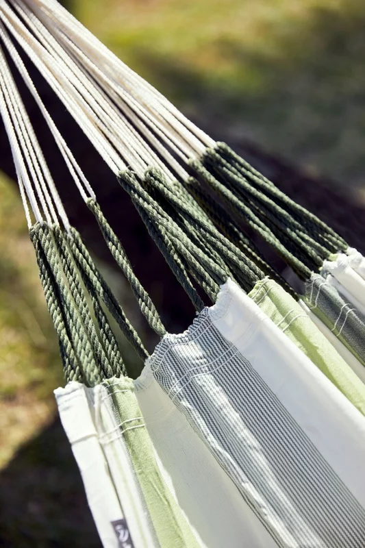 Hangmat Brisa Cedar in formaat XXL Family, gedempte groen tinten. Doek gemaakt van weerbestendig materiaal
