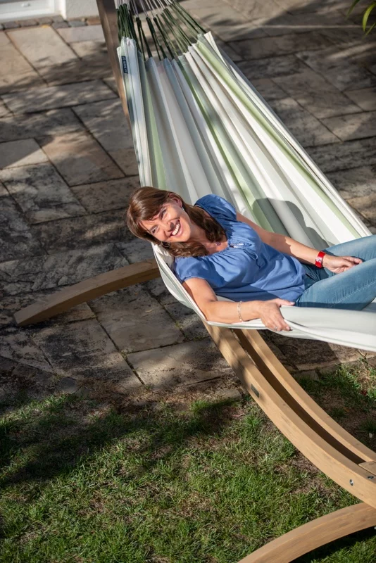 Hangmat Brisa Cedar in formaat XXL Family, fris groen in weersbestendig materiaal. Afmeting doek: 180x260 cm