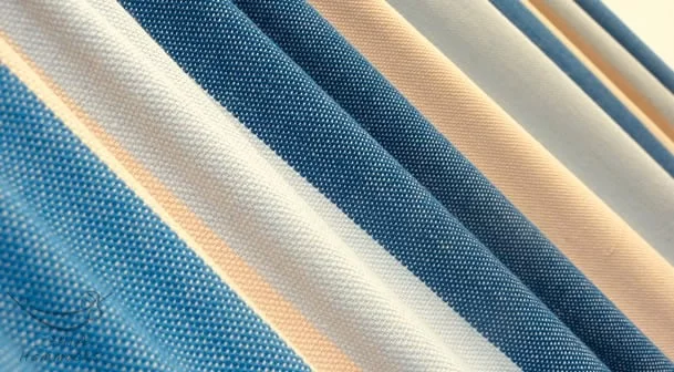 Stijlvolle hangmat in blauw en beige tonen.