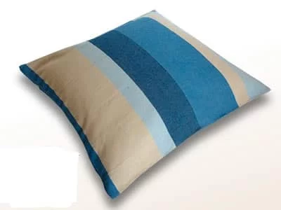 Stijlvolle hangmat in blauw en beige tonen. Kussentje 40x40 cm.