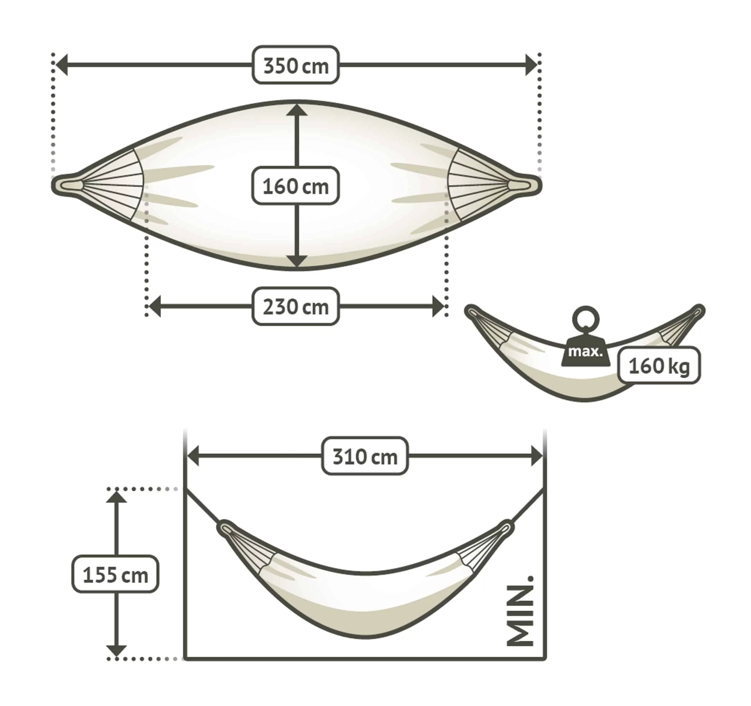 In bijzonder geweven groen kleur. Afmeting doek: 230x160 cm. Totale lengte: 350 cm • Max. belastbaar gewicht: 160 kg