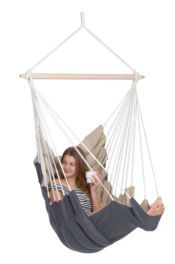 Heerlijk ruime hangstoel California Sand. Zeer geschikt om even lekker bij te komen. Prima kwaliteit en zeer mooi afgewerkt.