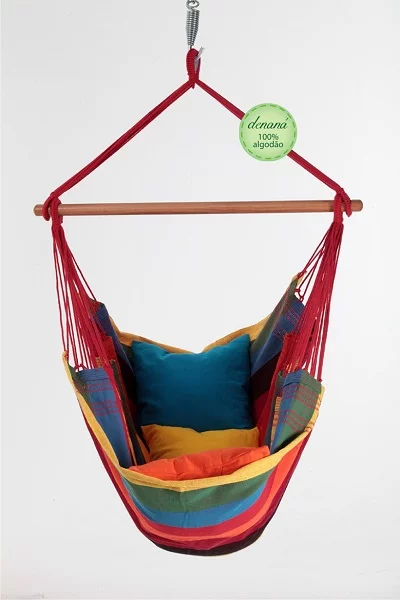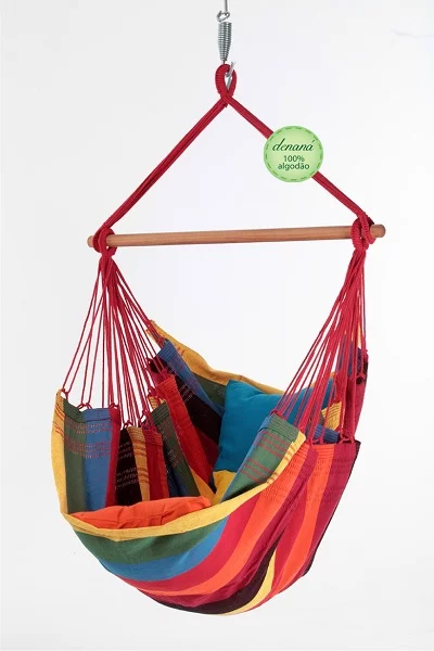 Prima kwaliteit hangstoel in vrolijke kleuren. Wordt geleverd Incl. handige opbergzak specificaties: 100 % katoen • afmeting doek: 170x130 cm • stokbreedte 100 cm Hoogte: 175 cm • max. belastbaar gewicht: 150 kg Geschi...